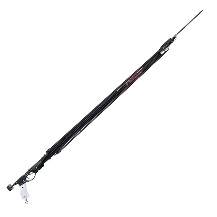 Contient le mécanisme Cayman, entièrement en acier inoxydable, qui assure une grande sensibilité de tir, même soumis à des charges extrêmes. Sous la poignée souple (la poignée ergonomique pour droitier est également livrée de série), on trouve un nouvel anneau en acier inoxydable pour fixer un mousqueton (également fourni de série).