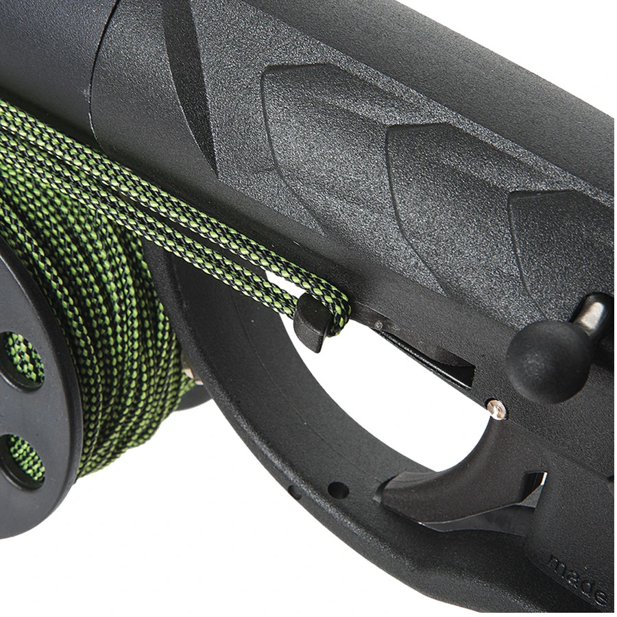 le largue fil en forme d’hĂ©lice positionnĂ© latĂ©ralement permet au mono fil de rester parfaitement le long du fut, et facilite l’utilisation du fusil, en empĂȘchant les accroches du mono fil sur les aspĂ©ritĂ©s rocheuses du fond. Sa fixation est facilitĂ©e par la conception mĂȘme avec des gants assez Ă©pais..
