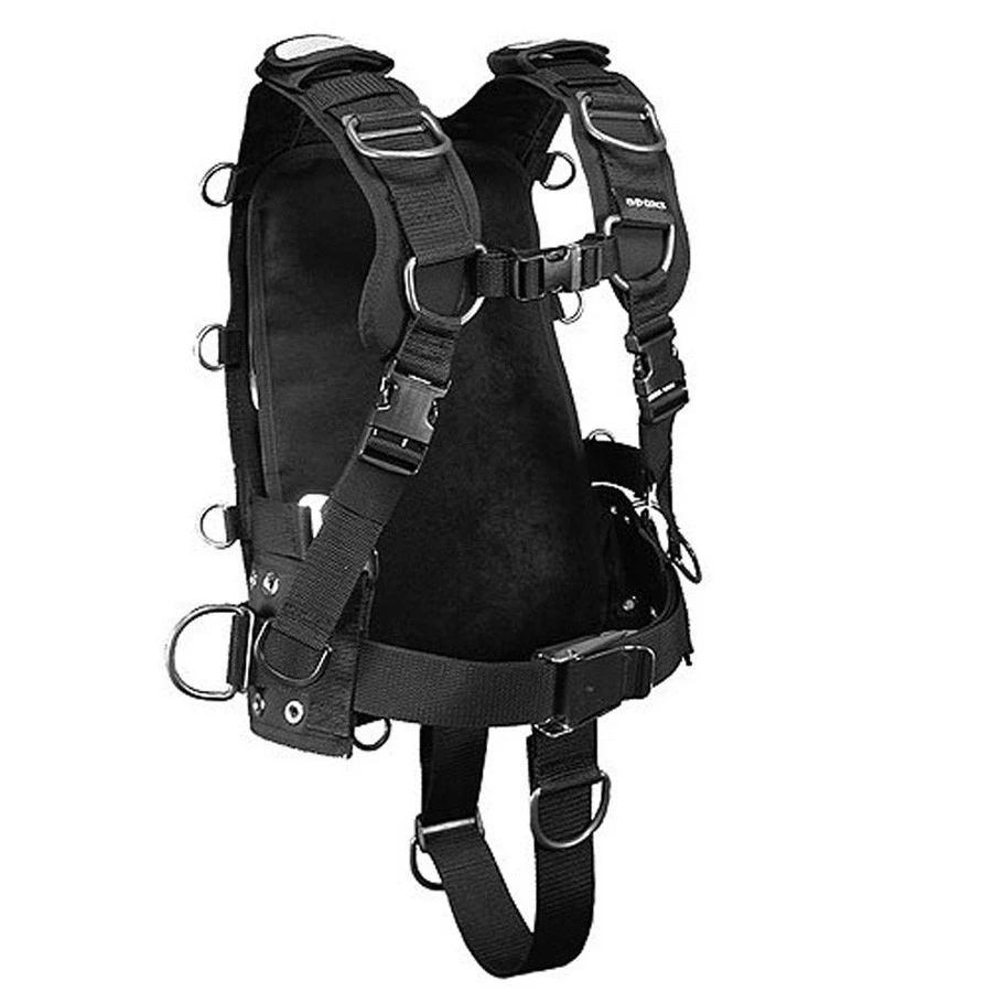 2 anneaux demi-ronds de 1 pouce en inox dans le bas du dos pour fixer les parachutes de paliers, les dévidoirs et les accessoires